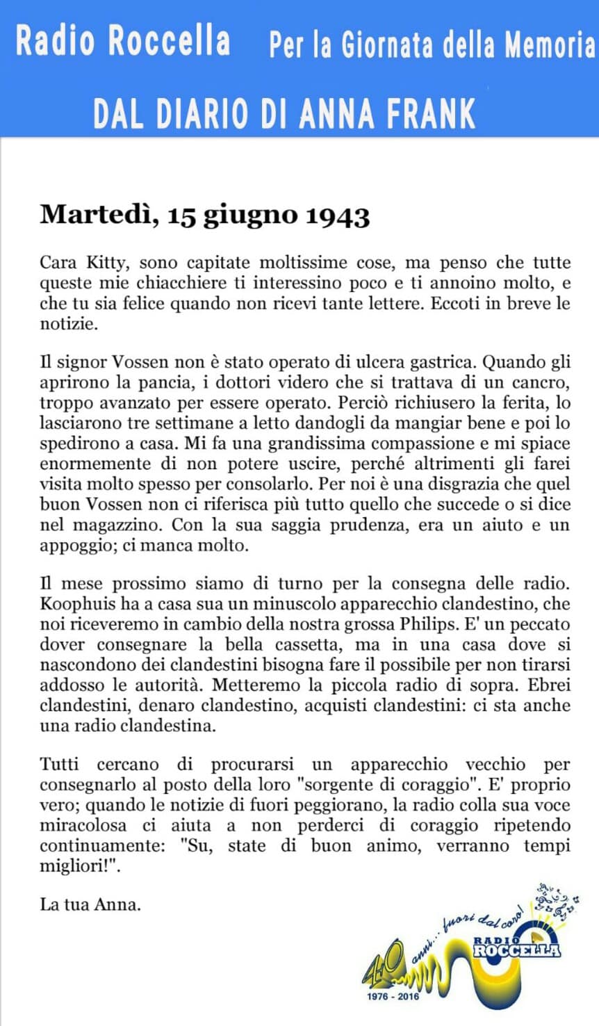 Radio Roccella la vuole ricordare così…