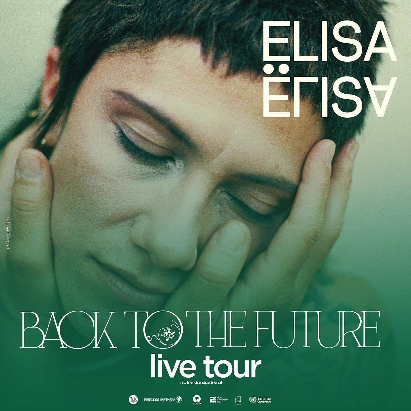 Il “Back to the Future Live Tour” inizierà ufficialmente il suo viaggio il 28 giugno dal “Parco dei ragazzi del 99” di Bassano del Grappa (Vi), dopo i tre show che anticiperanno il progetto all’Arena di Verona, dal 28 al 31 maggio, e proseguirà fino a settembre tra spettacolari vedute panoramiche e aree di grande interesse storico e culturale, tra cui il Teatro al Castello di Roccella Jonica. Per la prima volta Elisa sarà protagonista di una tournée che toccherà tutte le regioni d’Italia e le location scelte saranno tutte teatro di arte e natura. Ogni tappa diventerà occasione per valorizzare il luogo che la ospiterà, ciascuna sarà caratterizzata da una particolare importanza naturalistica, storica e/o culturale: un parco, una zona di calanchi, un bosco, un borgo antico, un luogo storico (la scelta delle tappe è stata fatta coinvolgendo i territori stessi). Così “Back to the Future Live Tour” non sarà solo un tour ma un festival itinerante con una serie di contenuti creati in collaborazione con Music Innovation Hub e altri compagni di viaggio per sensibilizzare il pubblico sull’argomento green. Al centro, infatti, ci sarà sempre un impegno particolare per l’ambiente, seguendo un importante protocollo redatto dal Politecnico di Milano e Music Innovation Hub.